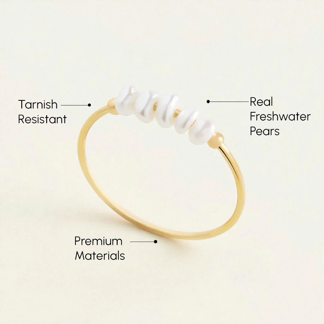 Crafted from premium materials, this Mini Pearl Ring features a smooth, spinning band that offers a subtle way to calm nerves and stay focused. With real freshwater pearls and tarnish-resistant construction, it's both stylish and durable, making it perfect for everyday wear. Hypoallergenic and gentle on the skin, this elegant ring combines function with fashion for a timeless accessory